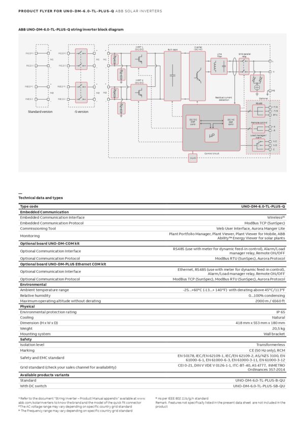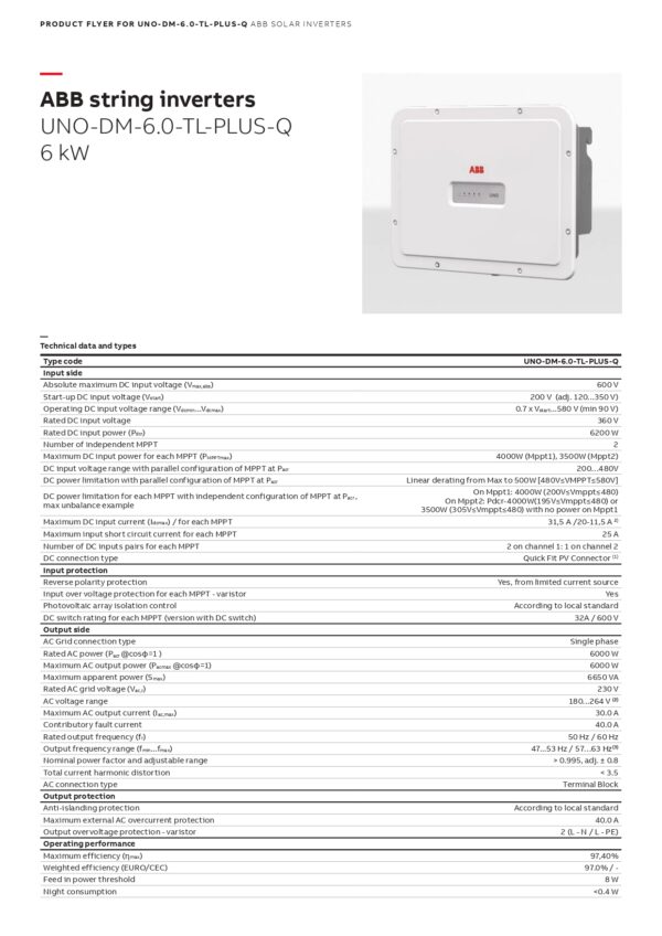 Be the first to review “ABB-Fimer UNO-DM-6.0-TL-PLUS-SB-G-QU Inverter monofase con sezionatore DC”