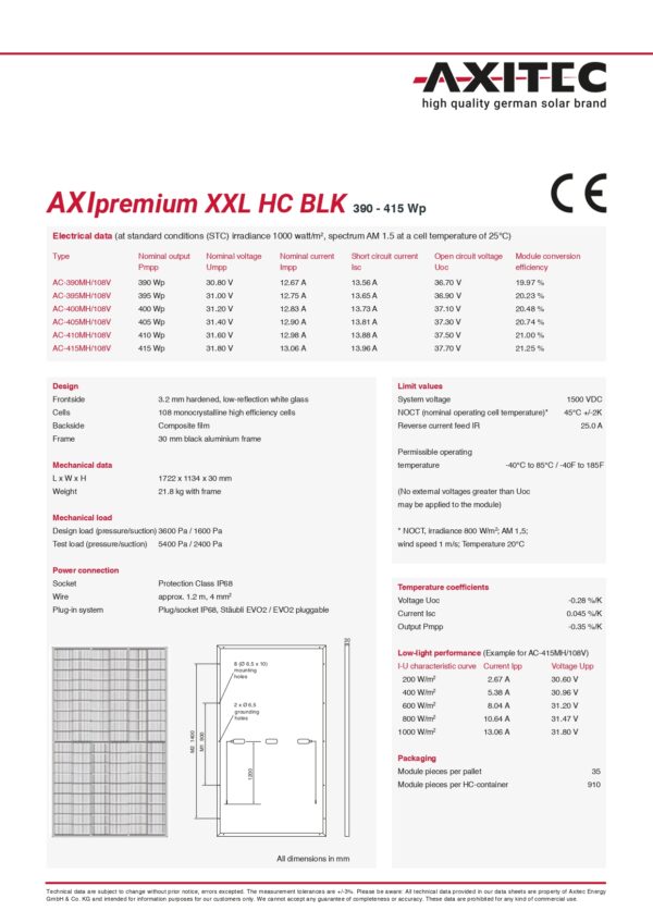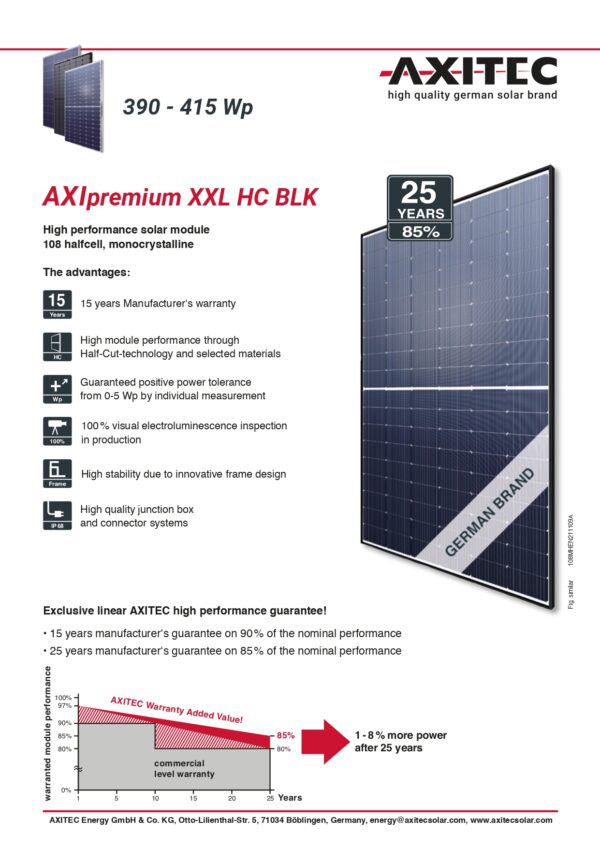 Be the first to review “AXITEC ENERGY AXIPREMIUM XXL HC BLK AC-410MH/108V AXITEC HIGH-QUALITY SOLAR MODULE”