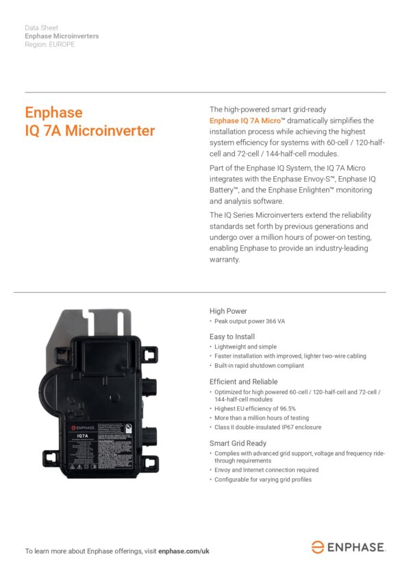 Be the first to review “ENPHASE ENERGY IQ7A-72-2-INT MICRO INVERTER FOR 60- AND 72-CELL MODULES”