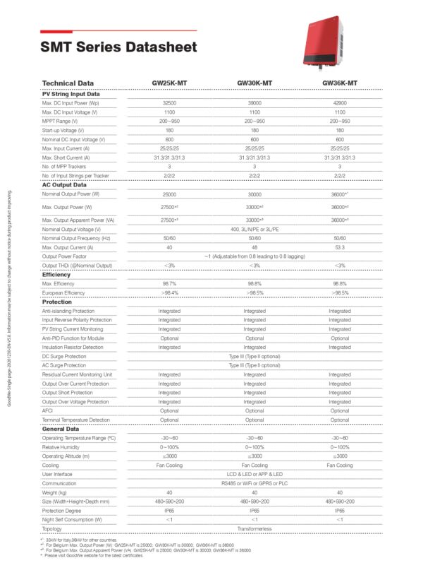 GOODWE GW36K-MT (+DC-SWITCH/WIFI/SPD TYPE II) Inverter di stringa trifase con interruttore DC