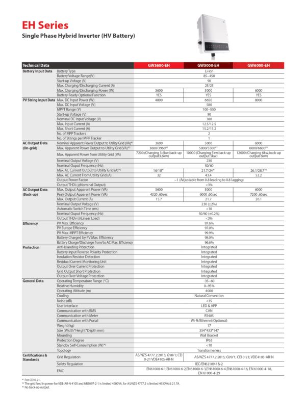 Inverter Ibrido Monofase GOODWE GW3600-EH HYBRID (CON WIFI/DC-SWITCH)