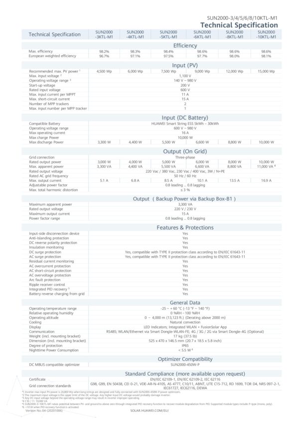 Huawei SUN2000-8KTL-M1 – Inverter fotovoltaico ibrido trifase 8000W 2MPPT