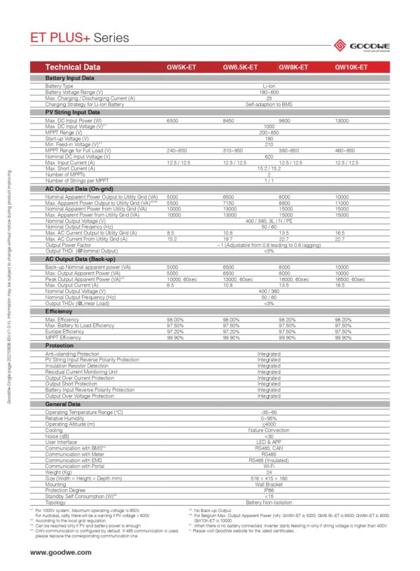 Be the first to review “Inverter Ibrido Trifase GOODWE GW6.5K-ET (+DC-SWITCH/WIFI/3P-METER/BACKUP)”