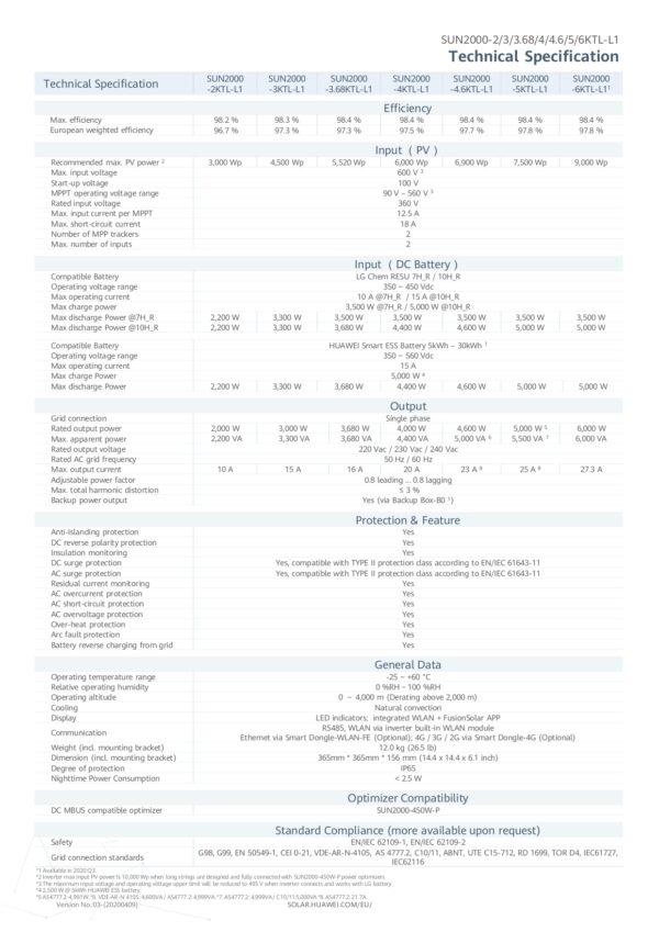Huawei SUN2000-XKTL-L1 Nuova generazione di inverter Huawei per impianti residenziali.