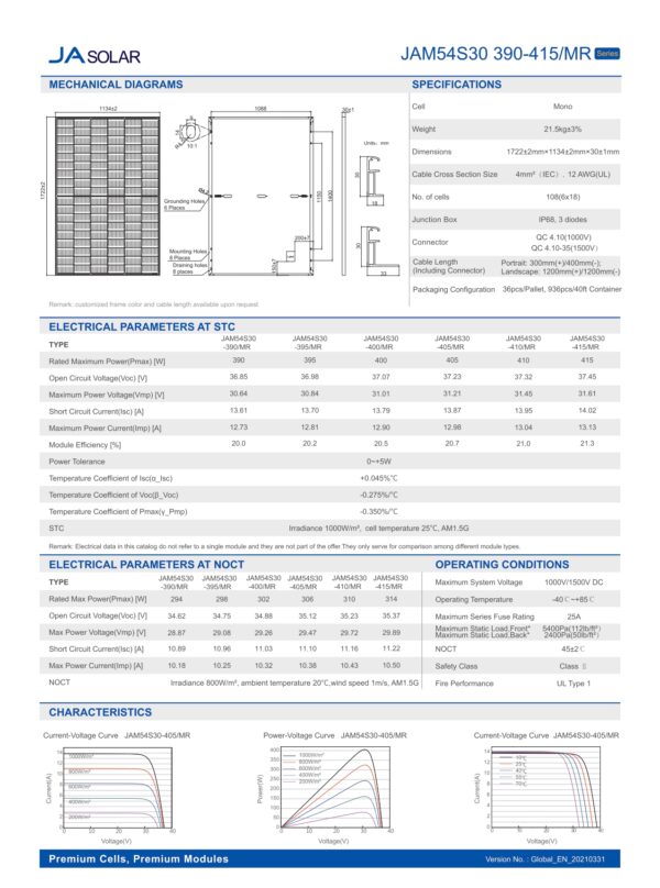 Be the first to review “JA Solar JAM54S30-405/MR JA Solar high-performance solar module black”