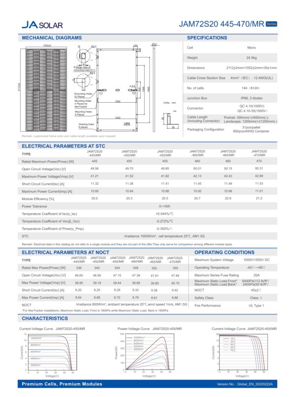 JA Solar JAM72S20-460/MR JA Solar high-performance solar module