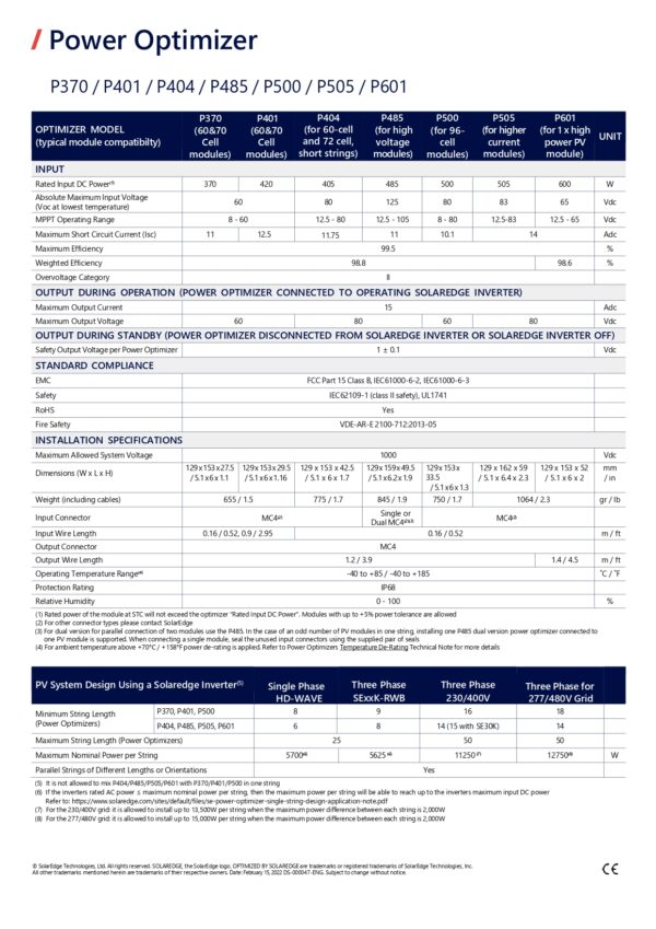 Be the first to review “SolarEdge POWER OPTIMIZER P500-P5 (MC4) Ottimizzatore di Potenza per moduli fino a 500W”