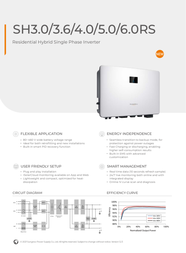 Sungrow SH6.0RS – Inverter di stringa monofase ibrido 2 Mppt 6000W