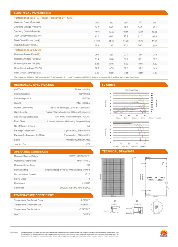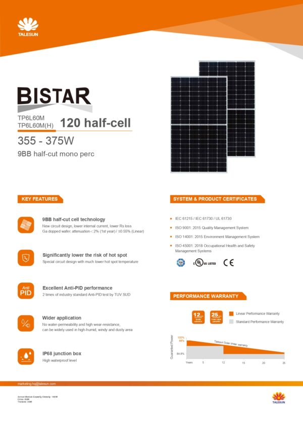 Be the first to review “Talesun Solar BISTAR TP6L60MH-375W Talesun Solar high-performance solar module”